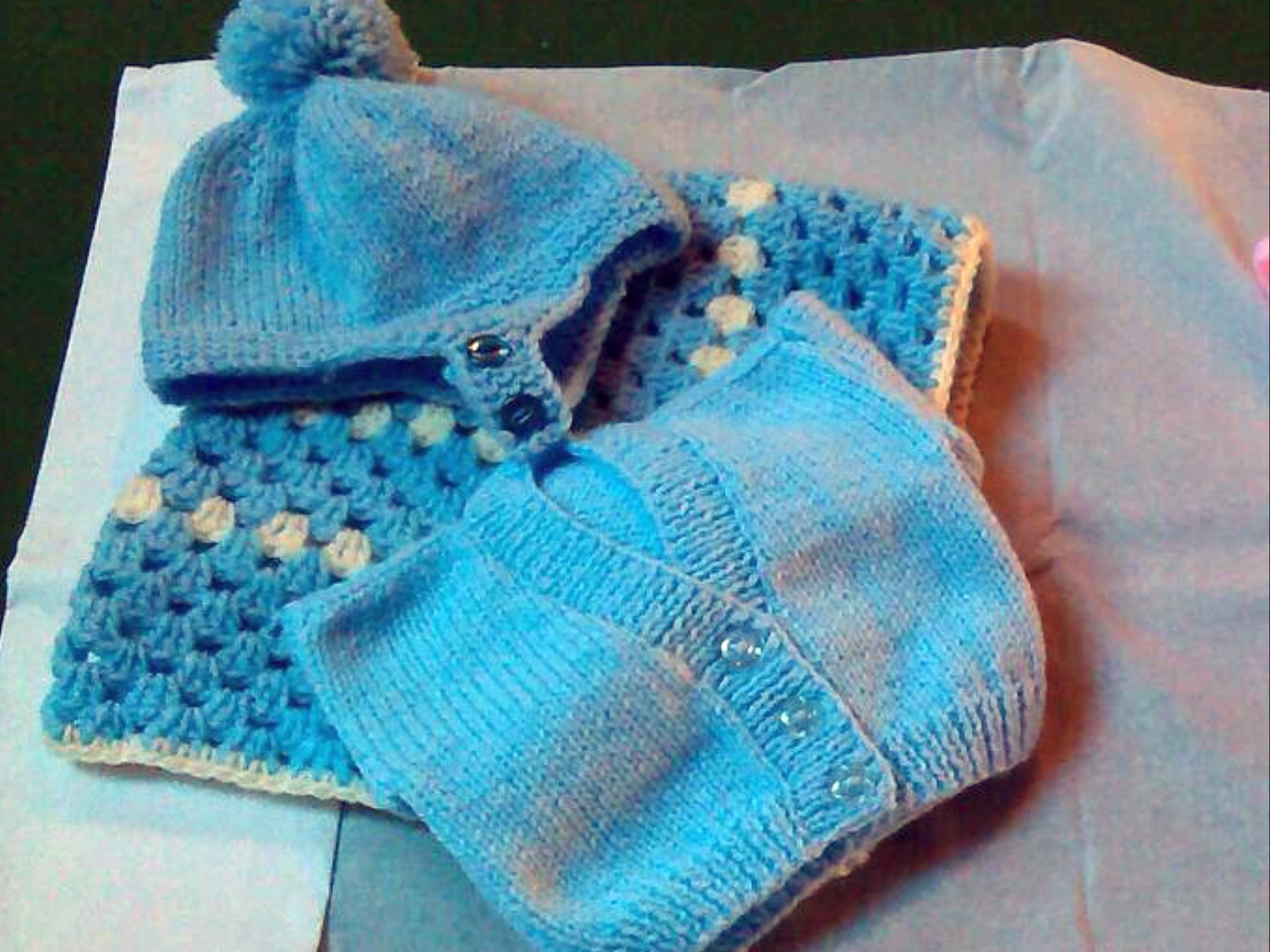 “We counted the items we have made since September and packed them up to take to the Royal Maternity Neo Natal Unit. The inventory of knitted items came to: 48 baby body warmers, 14 cardigans, 126 hats, 30 pairs mittens, 22 pairs bootees and 25 blankets! We have had help from a few friends for which we are very grateful”