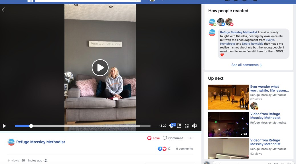 Mossley Methodist are delighted in sharing with you that our Youth Leader Elaine Gowdy has posted her inaugural video broadcast in the light of Covid19.