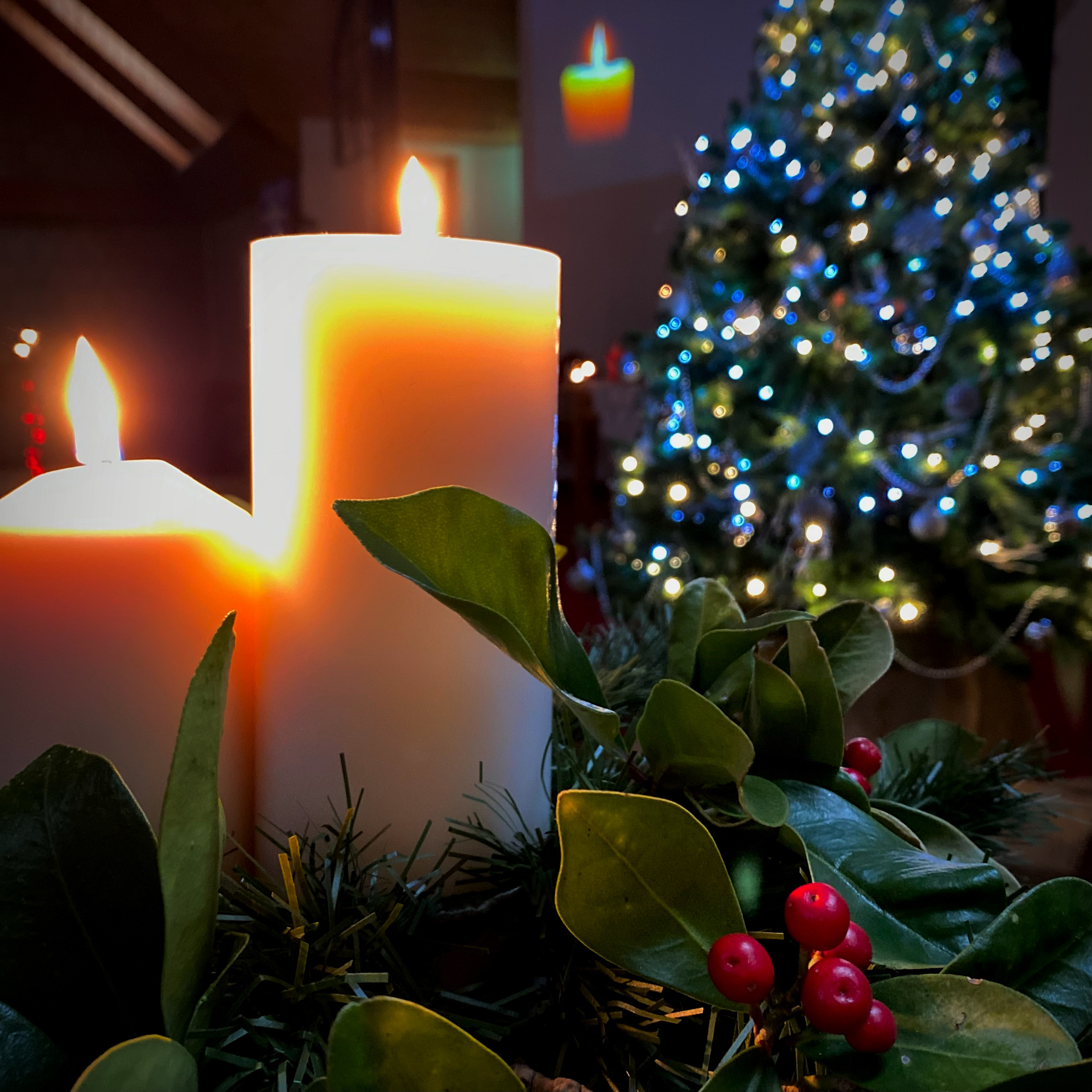 In Mossley this morning we were treated to a beautifully moving multimedia walk through of the Nativity Story. The Candles and fairy lights that twinkled around the church embellished the mood and encouraged renewed child-like wonder.