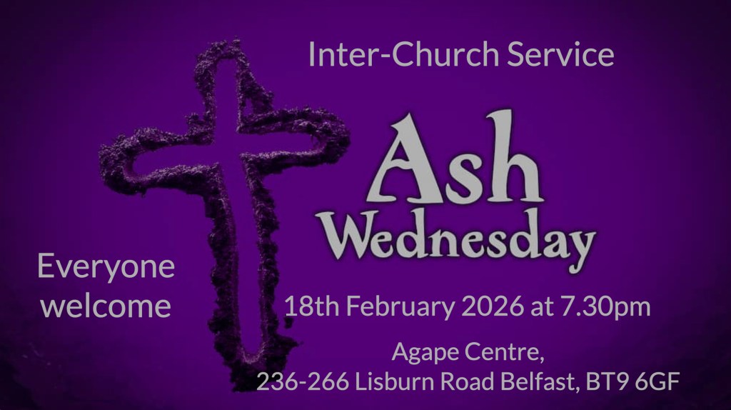 As we prepare our hearts for the season of Lent, we’d like to share details of an Inter-Church Ash Wednesday service taking place in our Belfast area.