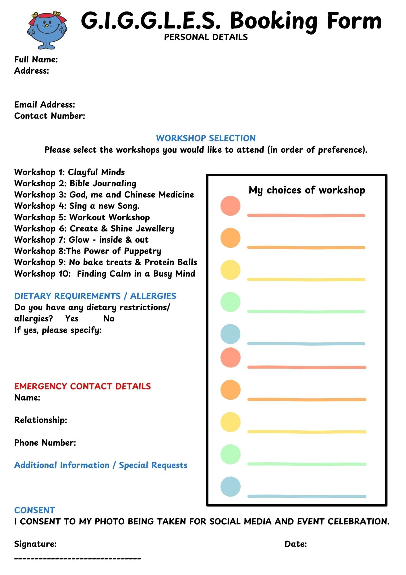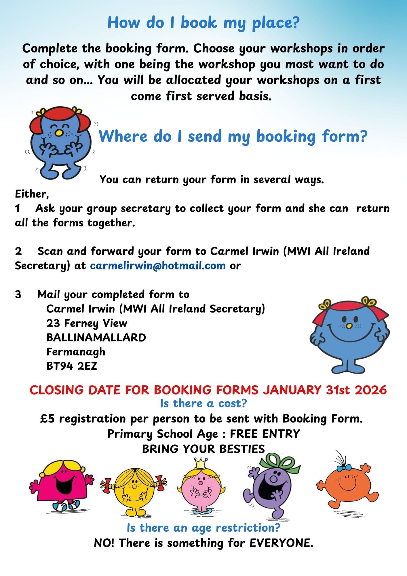 Complete the booking form (below). Choose your workshops in order of preference (1 being your top choice). Workshops will be allocated on a first-come, first-served basis.