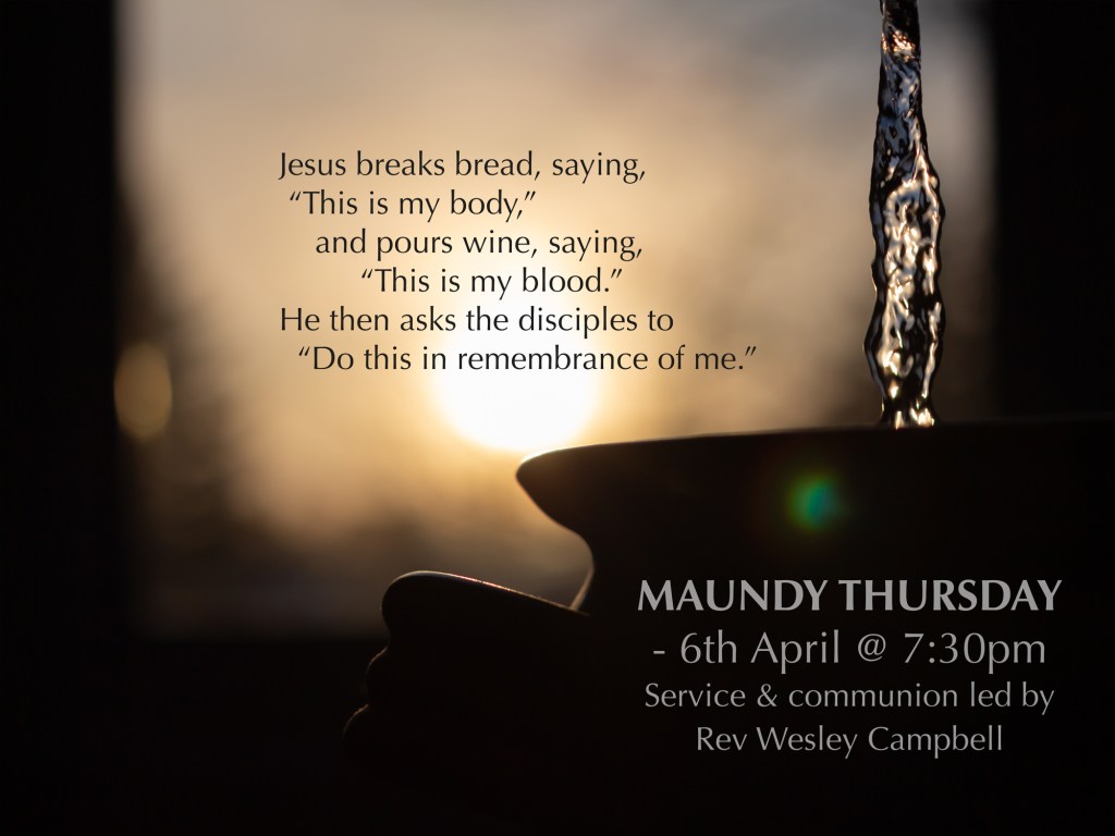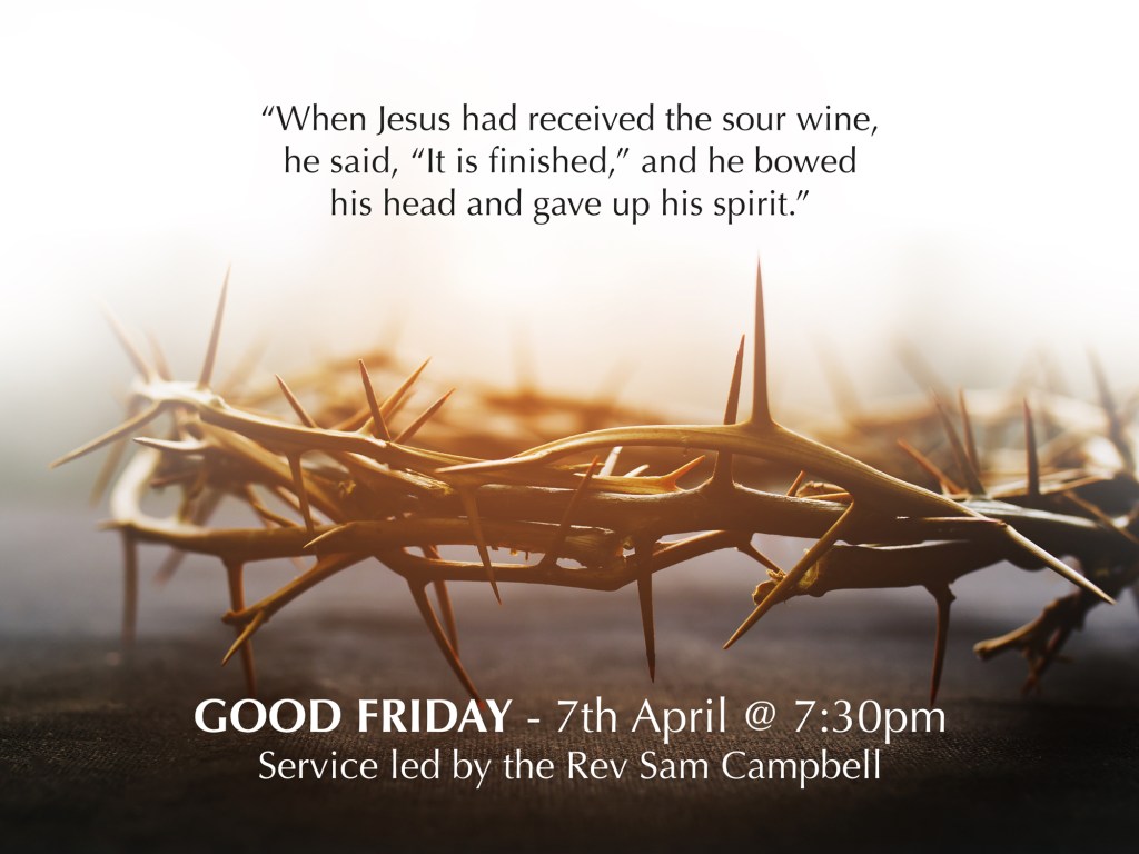 As of Monday 10th of April I will be on a weeks leave. However I will be available for pastoral emergencies, with first point of contact either Tommy Hutton or Christine McCausland for Mossley. Evelyn Stainer or Carole Lamb for Greencastle.